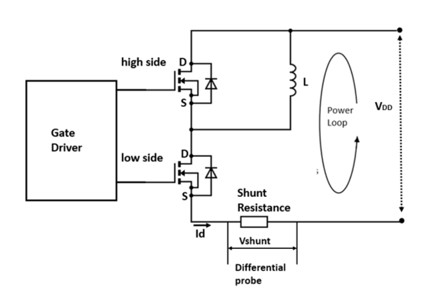 В новом методе ток стока (ID) захватывается и используется в качестве опорной осциллограммы. Во время включения рассчитывается осциллограмма выравнивания VDS нижнего транзистора, используя параметрическую модель тестовой схемы. Эта осциллограмма выравнивания ссылается на осциллограмму ID и не имеет временного сдвига относительно неё.