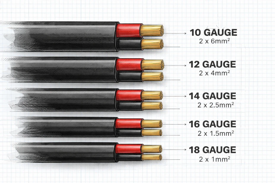 Choose the wire gauge: Select the wire gauge based on the distance and total connected power, then add a reserve for harsh environments.